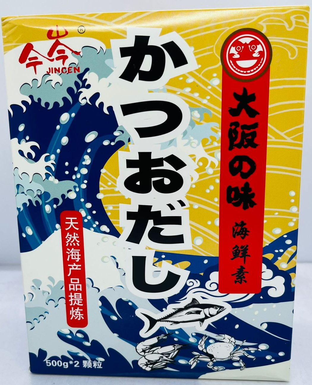 Hondashi is a Japanese instant soup stock made from a blend of dried bonito flakes, kombu (seaweed), and shiitake mushrooms. This grainy seasoning features a light brown granular texture and delivers a rich umami flavor, thanks to its ingredients like bonito powder, hydrolyzed bonito protein, and various flavor enhancers. Perfect for soups and broths, Hondashi adds a nutritious depth and unique fish aroma to your dishes.